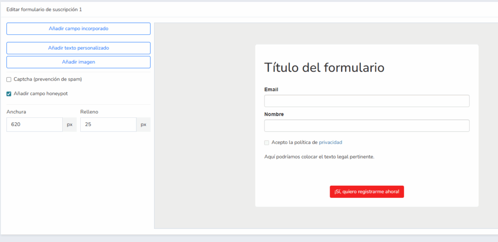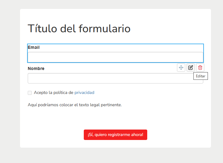 Eso con el editor de formularios de Mailrelay es muy sencillo, por ejemplo: